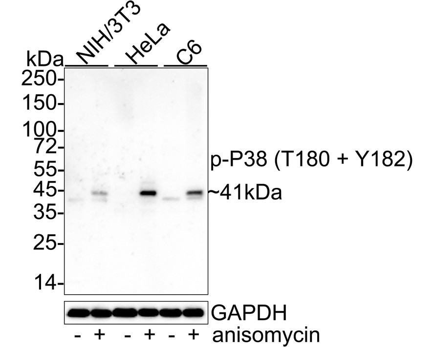 • Phospho-P38 (T180 + Y182) Rabbit Polyclonal Antibody